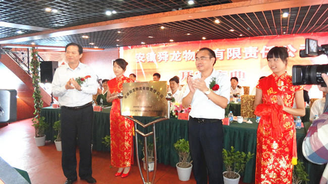 淮南礦業(yè)集團(tuán)副總經(jīng)理?xiàng)盍帧⑹徍h委書(shū)記何友旺共同為安徽舜龍物流有限責(zé)任公司揭牌