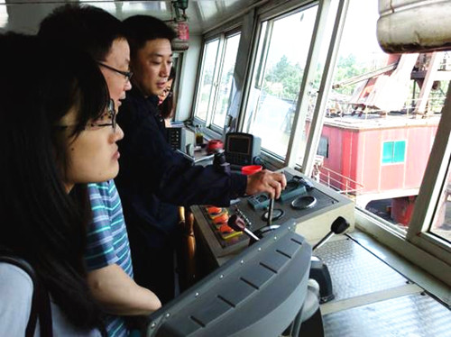 6月10日下午3點抵達銅陵碼頭,登上了在銅陵短暫停泊的和順18號輪,一行人頂著驕陽,在公司船員石秀旺和張學懷倆同志的引領下,快速登上了和順18號輪,進入現(xiàn)代化的船倉、駕駛室和生活倉實地查看,通過船員的操作示范和講解,零距離感受一線員工的工作和生活,更加真切地了解到船隊基層同事們的辛苦與奉獻。