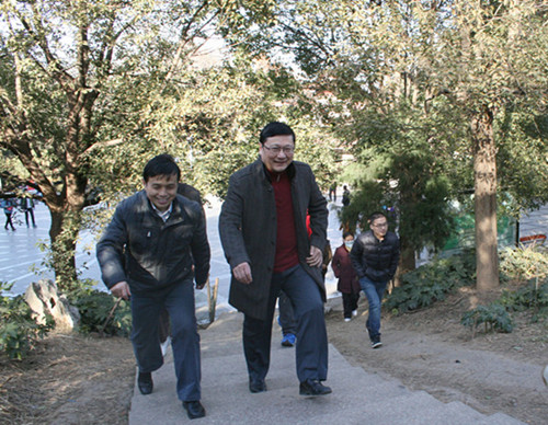 又到一年跨年時(shí)!好天氣再次如約而至——金色的陽(yáng)光把山上山下都烘焙的暖暖和和,和煦的微風(fēng)拂動(dòng)漫山的松樹(shù),偶爾泛起一陣陣墨綠的漣漪。好天氣、好風(fēng)景催生了參賽職工們的好心情,他們一邊輕松地開(kāi)著玩笑,一邊認(rèn)真地做著熱身運(yùn)動(dòng)。隨著馬剛書(shū)記一聲令下,大家都急切地向著山頂?shù)哪繕?biāo)奔去,他們或沉穩(wěn)矯健、快而不亂,或大步流星、歡呼雀躍,在山間的青石板上灑下一路歡歌笑語(yǔ)。