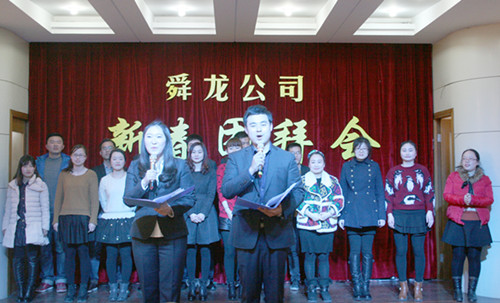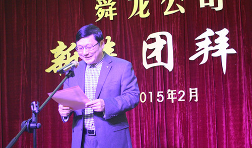 黨委書記馬剛在團拜會上致辭。他首先代表公司對公司老領導、集團公司部門領導、各界朋友和公司全體職工及家屬拜年。他指出,2014年,公司努力適應經濟發(fā)展新常態(tài),積極應對汽車短運限載和運費上漲、船運以船代庫壓港滯期賠付、江海運輸低迷、西部公司煤礦推遲投產沒有運輸量等困難和挑戰(zhàn),取得了良好的業(yè)績。新一年的開始也是企業(yè)謀劃新發(fā)展的關鍵時機,公司“兩會”已經描繪出新一年的發(fā)展藍圖,必將引導、激勵著舜龍職工以高度的主人翁意識與責任感,以腳踏實地兢兢業(yè)業(yè)的實干精神去實現發(fā)展目標。他最后祝愿全體員工在新的一年里身體健康、闔家幸福、工作順利、萬事如意。