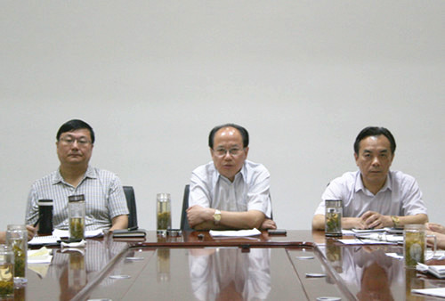 左起:黨委書記、副總經(jīng)理馬剛, 董事長余龍懷 , 副董事長、總經(jīng)理劉曹應(yīng)