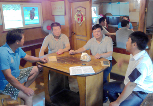 馬書記現(xiàn)場(chǎng)聽(tīng)取船隊(duì)長(zhǎng)匯報(bào)