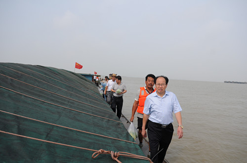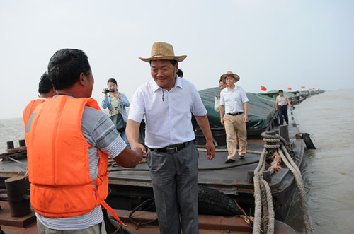 在船上,董事長(zhǎng)余龍懷還向劉傳惠副主席匯報(bào)了5日夜間發(fā)生在洪澤閘口的突發(fā)風(fēng)暴情況:公司舜龍8號(hào)隊(duì)和舜龍12號(hào)隊(duì)在航行過(guò)程中遭遇突如其來(lái)的強(qiáng)風(fēng)暴天氣,兩條船上人員和煤炭都“危在旦夕”。兩船船長(zhǎng)高懷玉、李順龍以及全體船員在公司領(lǐng)導(dǎo)和航運(yùn)部的指示下,積極采取有效施救措施,全力促使船舶脫險(xiǎn)、安全過(guò)閘,保障了船員人身以及整個(gè)船隊(duì)的物資安全。 劉傳惠副主席聞后對(duì)公司及船員們給予了充分肯定,并強(qiáng)調(diào),舜龍公司的同仁們?cè)谧ズ梅朗罱禍氐耐瑫r(shí),務(wù)必要把船隊(duì)安全度汛作為一項(xiàng)重要工作來(lái)做,及時(shí)掌握天氣、水情,嚴(yán)格落實(shí)24小時(shí)值班和領(lǐng)導(dǎo)帶班制度,做好防汛設(shè)備、物資保養(yǎng)維護(hù),確保在關(guān)鍵時(shí)刻發(fā)揮關(guān)鍵作用。