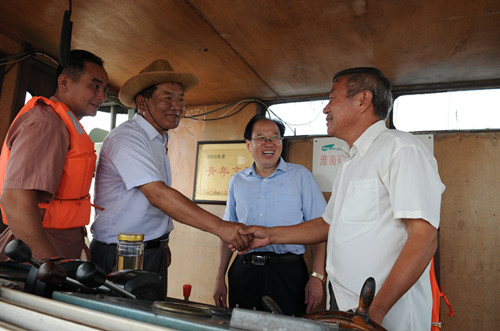 劉傳惠副主席逐一對(duì)十幾條駁船的船員進(jìn)行慰問(wèn)。在聽取了董事長(zhǎng)余龍懷和黨委書記馬剛對(duì)船隊(duì)工作的介紹之后,劉傳惠副主席深有感觸,他說(shuō),船上的工作和生活環(huán)境都很艱苦,夏天夜晚蚊蟲叮咬,白天船板熱的發(fā)燙,船艙沒(méi)有空調(diào),船員們吃住在船上,堅(jiān)守在最艱苦的崗位上,為保證舜龍公司船隊(duì)的正常航行做出自己的貢獻(xiàn)。高溫仍將繼續(xù),請(qǐng)每一位船員時(shí)刻注意防暑降溫、注意身體健康和人身安全,合理安排好時(shí)間,切實(shí)做好安全生產(chǎn)工作。同時(shí)希望船隊(duì)的管理人員以人為本、關(guān)心我們的船員,及時(shí)提供防暑藥品和降溫物品,為船員順利度過(guò)酷暑提供保障和必要的設(shè)施,為安全航行打下基礎(chǔ)。