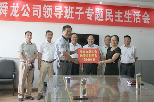 8月7日,市總工會(huì)副主席劉傳惠一行帶著市總的慰問(wèn)來(lái)到舜龍公司,看望慰問(wèn)高溫下堅(jiān)守崗位的全體舜龍員工,并給公司送來(lái)了慰問(wèn)金。公司董事長(zhǎng)余龍懷,總經(jīng)理劉曹應(yīng),總經(jīng)理助理蘇群、田學(xué)銀,工會(huì)副主席羅曉媛及相關(guān)部門負(fù)責(zé)人在三樓會(huì)議室接待了來(lái)賓一行。
