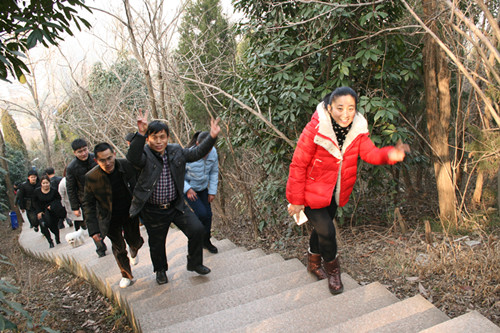 北風(fēng)帶來(lái)了入九的寒冬,卻也吹散了連日來(lái)的霧霾,換來(lái)了難得的艷陽(yáng)天。參賽職工飽滿的熱情更是在登山的石坡上灑下了一股暖流。他們有的嚴(yán)肅認(rèn)真,雙眼緊盯腳下的石板;有的不時(shí)地輕松調(diào)侃,不過(guò)腳步卻并沒(méi)有放慢。從山頂望去,男選手們爭(zhēng)先恐后,步伐矯健,競(jìng)爭(zhēng)激烈。女選手們?nèi)齼沙尚校_步輕盈,有說(shuō)有笑??芍^紅襖綠葉相映成趣,歡聲笑語(yǔ)輕松跨年,這也是舜龍公司積極健康企業(yè)文化的生動(dòng)寫照。