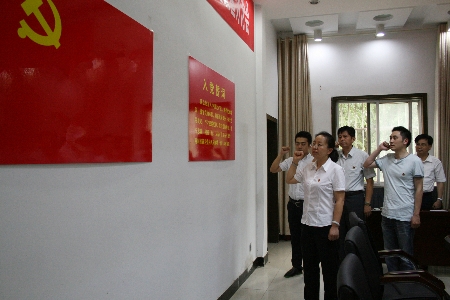 最后新老黨員一起面對黨旗舉起右手莊嚴(yán)宣誓,重溫入黨誓詞,以表達(dá)對黨的熱愛和忠誠,堅定了繼續(xù)為人民服務(wù)的信念,及在思想上、行動上與黨中央保持一致的決心。