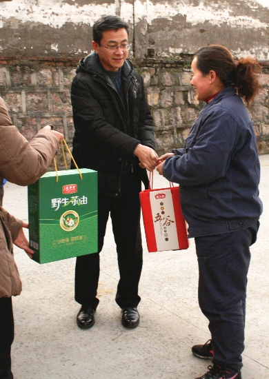 公司黨委副書記、紀(jì)委書記、工會(huì)主席梁斌為職工親屬送上慰問(wèn)品