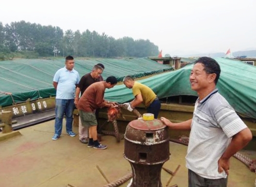 8月底,多年不見的淮河秋汛不期而至且來勢(shì)兇猛,這一警汛引起淮河事業(yè)部管理層的高度重視,立即召開專門會(huì)議研究制定渡汛方案和措施,要求船隊(duì)全體人員分成兩班堅(jiān)守船隊(duì),確保船長(zhǎng)、輪機(jī)長(zhǎng)盯守值班,主機(jī)保持隨時(shí)啟動(dòng)狀態(tài);駁船人員在船隊(duì)長(zhǎng)的帶領(lǐng)下保證白天上下午的兩次巡查,夜班上下半夜不低于四次巡查,對(duì)任何安全隱患、蛛絲馬跡都要高度重視,不查明原因絕不放過,查明原因則立即整改和處理。9月5日夜21時(shí)許、9日中午11時(shí)許,兩次犁錨都因船隊(duì)及時(shí)啟動(dòng)應(yīng)急方案,第一時(shí)間動(dòng)員船隊(duì)干員,及時(shí)開動(dòng)輪船及小機(jī)船,采取前拖后推措施,重新下錨穩(wěn)定船隊(duì),避免了船隊(duì)一起安全事故的發(fā)生。9月11日傍晚,一友鄰船隊(duì)也出現(xiàn)隨河道主流整隊(duì)無動(dòng)力下行飄移的險(xiǎn)情,舜龍9號(hào)隊(duì)以及其他在附近的船隊(duì)?wèi)?yīng)該隊(duì)請(qǐng)求,投入搶險(xiǎn)護(hù)拖,使該隊(duì)化險(xiǎn)為夷,展現(xiàn)了舜龍船隊(duì)很強(qiáng)的專業(yè)機(jī)動(dòng)應(yīng)急能力,譜寫了一曲精誠(chéng)合作共度險(xiǎn)關(guān)的友誼篇章。