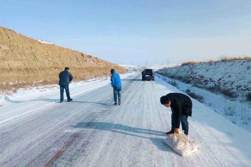 6日一早,雪還在下,舜龍公司總經(jīng)理助理、鄂爾多斯市舜龍公司總經(jīng)理蔣召舉帶領(lǐng)綜合經(jīng)營(yíng)部經(jīng)理王生貴趕赴泊江海子礦,會(huì)同貿(mào)易公司、礦煤銷科人員召開現(xiàn)場(chǎng)會(huì),議定融雪除冰方案:只要雪一停,首先用鏟車推,接著撒融雪劑,最后用裝煤車碾壓。中午時(shí)分,雪勢(shì)明顯減弱,蔣總一聲令下,大家分頭行動(dòng)。因線路太長(zhǎng),人手緊張,準(zhǔn)備的融雪劑不夠用,接到通知后的色連二礦物流分公司經(jīng)理張有松帶著業(yè)務(wù)員蔣磊、龐士成和融雪劑火速馳援。經(jīng)過大家的共同努力,融冰效果非常明顯,路上的車輛逐漸多了起來,看到舜龍公司員工上下同心,冒著零下17度的嚴(yán)寒鏟冰除雪,想司機(jī)安危之所想,急煤礦生產(chǎn)之所急,過往的司機(jī)有的向我們鳴笛表示敬意,有的向我們敬禮表示感謝,有的向我們豎大姆指表示欽佩!當(dāng)天完成發(fā)運(yùn)60車,7號(hào)259車,8號(hào)301車,9號(hào)436車。