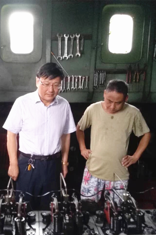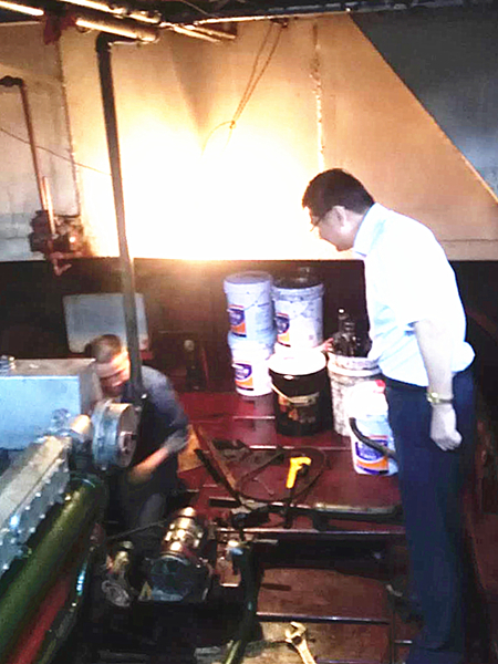 在無錫能達東亭電廠,他來到待卸的舜龍9號船隊檢查指導(dǎo),在機艙聽取了船隊長等人對主機目前運行總體狀況的匯報之后,馬總指出,安全航行來不得半點馬虎。船隊要準確真實的掌握設(shè)備運行狀況,對已到維修保養(yǎng)日期的而暫時不方便安排大修的部件,要重點關(guān)注;對出現(xiàn)的安全隱患要及時排除。中午,馬總一行頂著酷暑、風塵仆仆趕到揚州江岸港口浮吊,調(diào)研返程貨源市場情況。他提出,船隊安全航行和市場開發(fā)拓展、多拉快跑經(jīng)營創(chuàng)效是相輔相成的,三方關(guān)系要協(xié)調(diào)好,不能顧此失彼。公司各船隊要想方設(shè)法開展雙向物流,降低航次成本,以彌補下水航次效益的不足,增加船隊人員的經(jīng)濟收入,確保隊伍穩(wěn)定,維持大家的基本生活水平不下降。