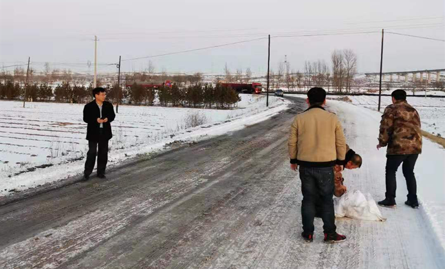 千里冰封,萬(wàn)里雪飄的北國(guó)風(fēng)光是美麗壯觀的,但我們的心境是焦急的。16日,天晴了,冰雪開(kāi)始消融,但積雪太厚,消融緩慢,而且日光下的短暫消融到下午很快就被刺骨的寒風(fēng)重新凍結(jié);17日、18,依然如此,昔日繁忙的運(yùn)輸線(xiàn)全都安靜了下來(lái)。19日,鄂爾多斯市舜龍公司開(kāi)始啟動(dòng)冬季發(fā)運(yùn)應(yīng)急預(yù)案:上午,鄂爾多斯市舜龍公司總經(jīng)理蔣召舉安排泊江海分公司、合作車(chē)隊(duì)對(duì)貿(mào)易煤運(yùn)輸線(xiàn)路進(jìn)行撒鹽,融雪除冰;由于線(xiàn)路長(zhǎng)、冰雪覆蓋厚,儲(chǔ)備的鹽很快撒完,且車(chē)輛根本出不來(lái)購(gòu)買(mǎi),蔣總又及時(shí)與李家集運(yùn)站協(xié)調(diào)借鹽,融雪除冰工作繼續(xù)進(jìn)行……