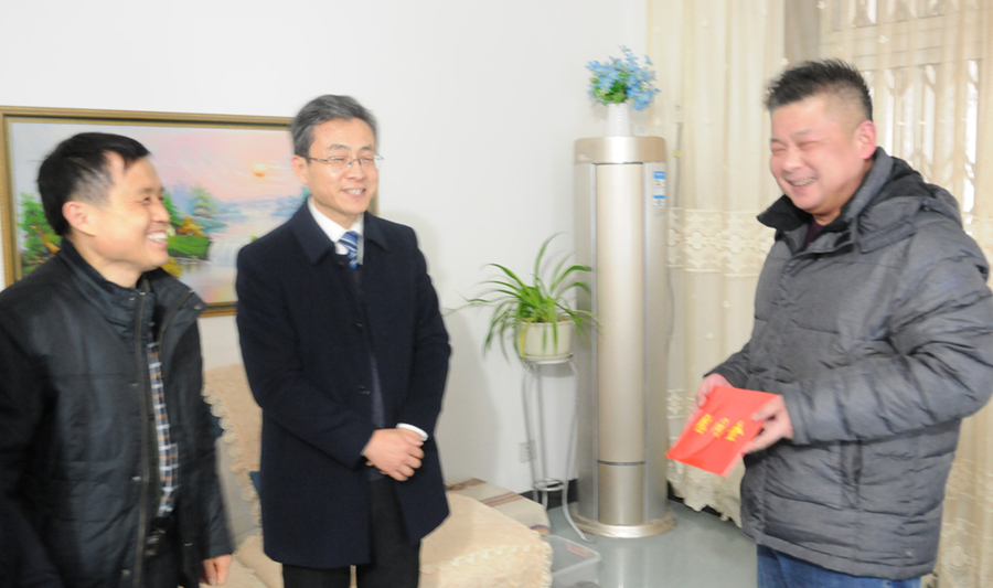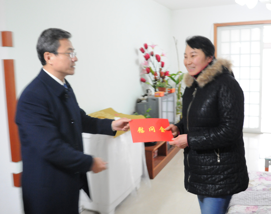公司黨委副書記、紀(jì)委書記、工會(huì)主席梁斌為困難職工家庭送上慰問金