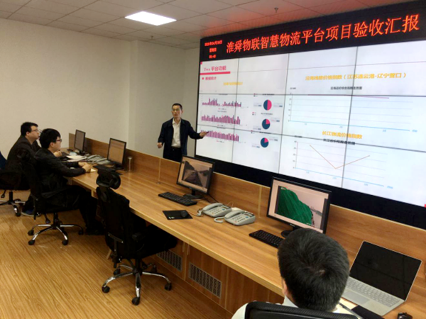 智慧物流服務(wù)中心主任徐新懷同志分別從智慧物流平臺(tái)介紹、平臺(tái)功能、項(xiàng)目完成度、成果展示及未來(lái)展望五個(gè)方面進(jìn)行了全面的講解匯報(bào)。一是物聯(lián)平臺(tái)得到了淮礦西部貿(mào)易公司的認(rèn)可,開發(fā)了車貨配,安裝了運(yùn)銷展示大屏,與集團(tuán)供應(yīng)公司、淮礦西部貿(mào)易公司以及西部三個(gè)礦點(diǎn)(唐家會(huì)、色連二礦、泊江海)進(jìn)行了實(shí)時(shí)數(shù)據(jù)互聯(lián)互通。2019年,通過(guò)收取平臺(tái)服務(wù)費(fèi)創(chuàng)效55萬(wàn)元。下一步平臺(tái)還要繼續(xù)為淮礦西部貿(mào)易公司服務(wù),開發(fā)進(jìn)礦掃碼等個(gè)性化功能。二是物聯(lián)平臺(tái)得到了淮礦電力燃料有限責(zé)任公司的認(rèn)可,淮礦電燃部分業(yè)務(wù)使用物聯(lián)平臺(tái)進(jìn)行市場(chǎng)化招投標(biāo),簽訂了平臺(tái)使用協(xié)議,為公司開辟了新的利潤(rùn)增長(zhǎng)點(diǎn)。三是物聯(lián)平臺(tái)得到了集團(tuán)銷售中心的認(rèn)可,物聯(lián)平臺(tái)填補(bǔ)了集團(tuán)銷售物流環(huán)節(jié)定位、可視化監(jiān)管的空白,為此,集團(tuán)公司專門下文,要求物聯(lián)平臺(tái)同集團(tuán)銷售中心運(yùn)銷信息化平臺(tái)進(jìn)行對(duì)接,更好的為集團(tuán)公司服務(wù)。四是物聯(lián)平臺(tái)取得了無(wú)船承運(yùn)人資質(zhì),與揚(yáng)子銀行進(jìn)行了接口對(duì)接,通過(guò)平臺(tái)運(yùn)作,打通了“信息流、物流、票據(jù)流、資金流、證據(jù)流”,為公司開展業(yè)務(wù)代開發(fā)票做好了前期的準(zhǔn)備工作。五是通過(guò)公司開展的業(yè)務(wù),對(duì)平臺(tái)不斷地進(jìn)行測(cè)試、打磨,使其更貼近“實(shí)戰(zhàn)”,便于廣大會(huì)員操作,同時(shí)進(jìn)行數(shù)據(jù)積累,為公司后續(xù)開展找船業(yè)務(wù)、招標(biāo)報(bào)價(jià)提供精準(zhǔn)的數(shù)據(jù)支撐。六是享受各地政策扶持,物聯(lián)平臺(tái)后續(xù)將通過(guò)開展校企聯(lián)合,通過(guò)注冊(cè)新公司,申請(qǐng)辦理軟件著作權(quán)和專利等享受稅率返還和政策扶持。七是提升了公司整體信息化管理水平,增加了使企業(yè)可持續(xù)發(fā)展動(dòng)力。最后針對(duì)當(dāng)前開展的業(yè)務(wù),現(xiàn)場(chǎng)操作演示了招投標(biāo)、運(yùn)單管理、單據(jù)上傳、位置跟蹤、視頻監(jiān)控等全流程監(jiān)管功能。