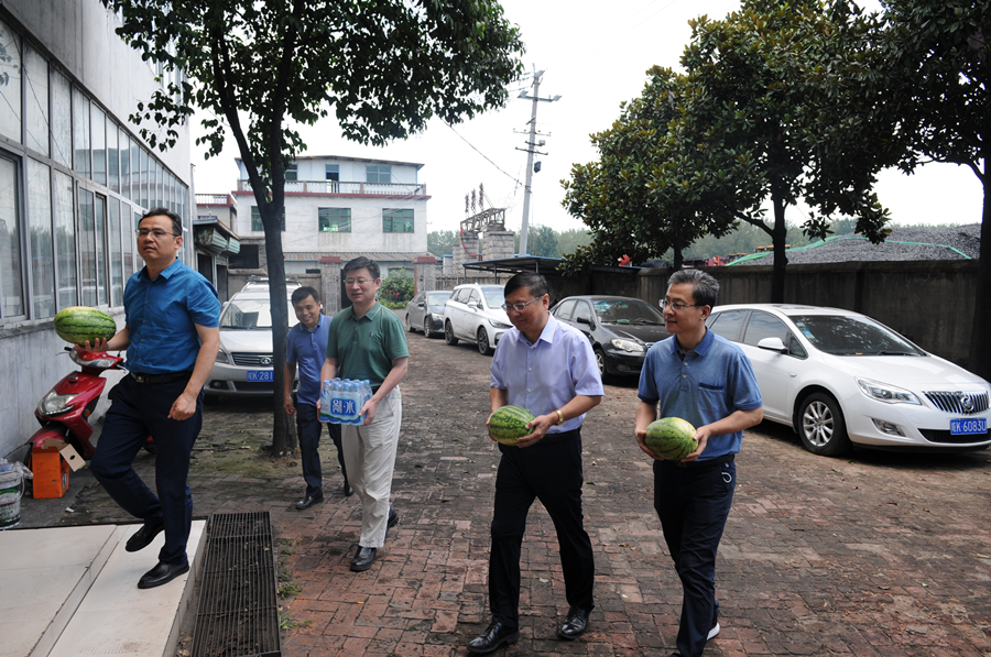 連日高溫,驕陽(yáng)似火。為做好高溫季節(jié)防暑降溫工作,切實(shí)保障一線職工的安全健康。8月4日上午,公司黨委副書記、總經(jīng)理馬剛,黨委副書記、紀(jì)委書記、工會(huì)主席梁斌,財(cái)務(wù)總監(jiān)陳學(xué)忠在淮河物流事業(yè)部總經(jīng)理班友慧、經(jīng)營(yíng)發(fā)展(業(yè)務(wù)管理)部部長(zhǎng)鄒建春的陪同下親臨河南周口市劉灣港煤場(chǎng)看望慰問(wèn)一線職工,送去西瓜等防暑降溫物品,并把組織關(guān)懷送到職工心坎上。