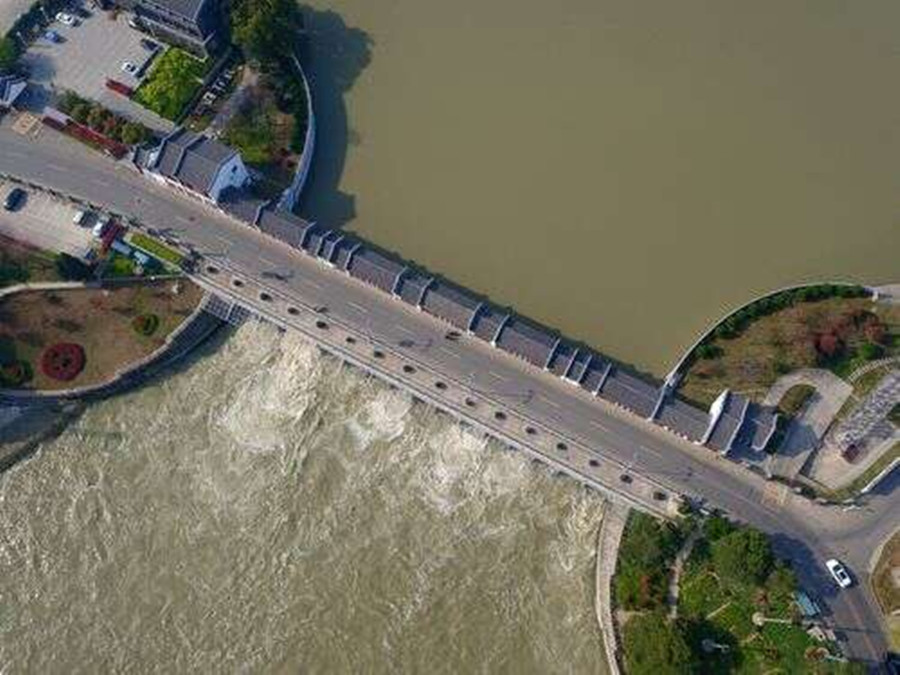4月8日,江蘇省淮安市洪澤區(qū)高良澗閘正在泄洪。