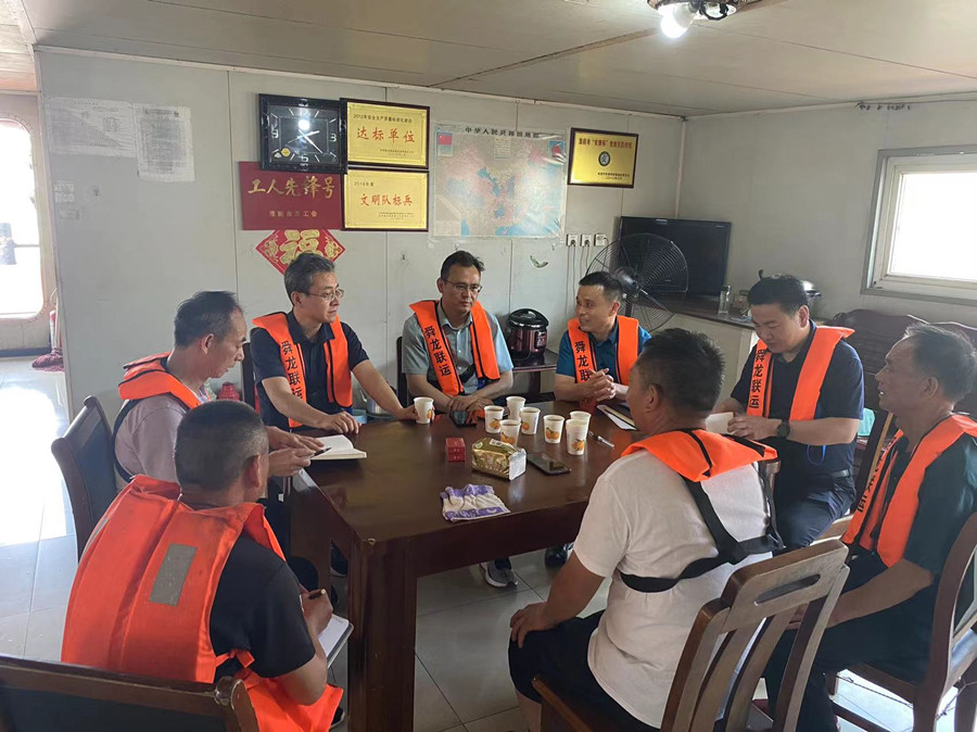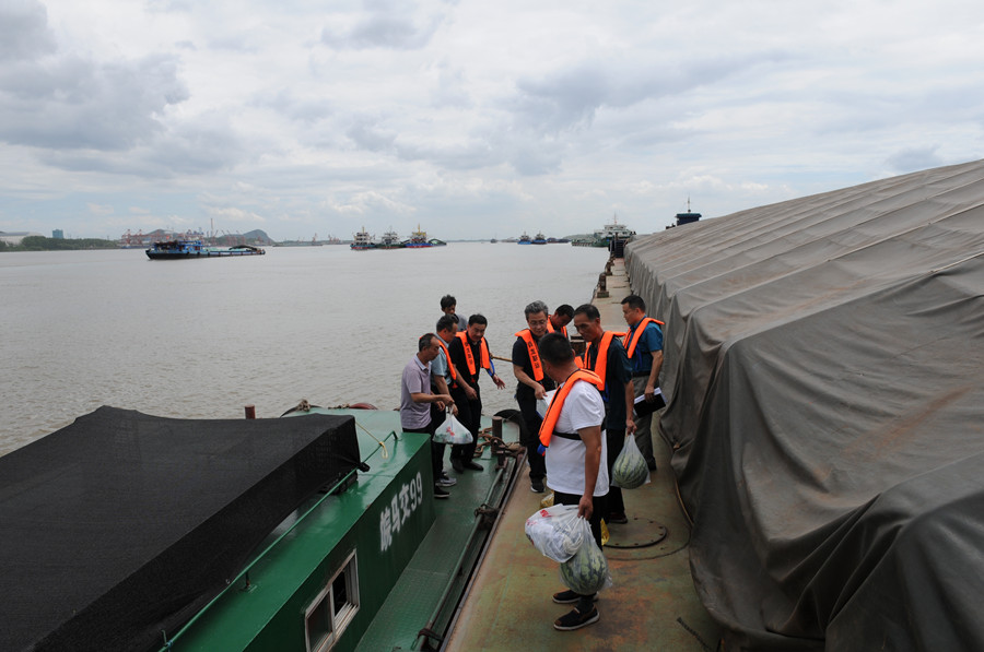 6月21日,公司黨委副書記、紀(jì)委書記、工會(huì)主席梁斌,副總經(jīng)理班友慧一行冒著高溫酷暑對(duì)停靠在馬鞍山馬二電碼頭的舜龍18號(hào)江輪進(jìn)行了安全生產(chǎn)檢查,并帶去了防暑物品進(jìn)行了慰問(wèn)。