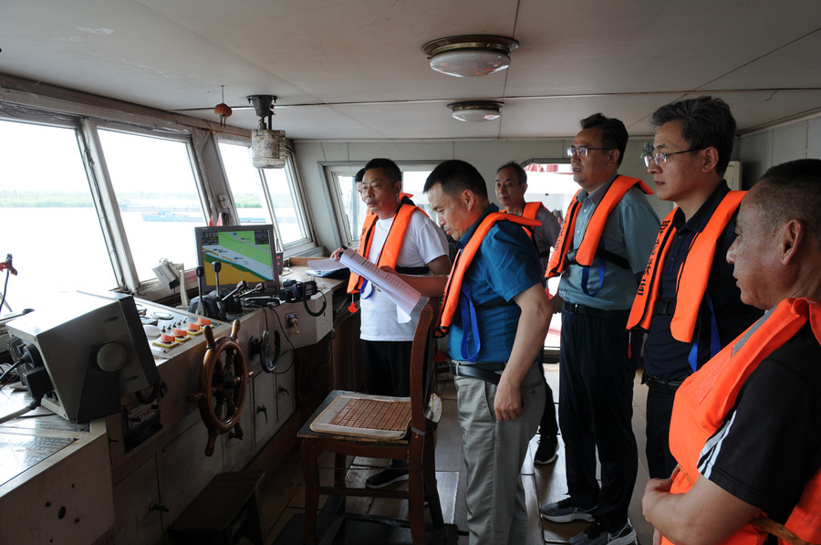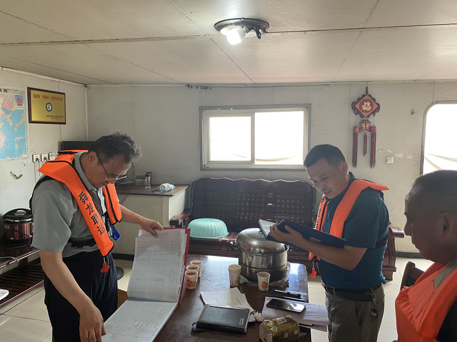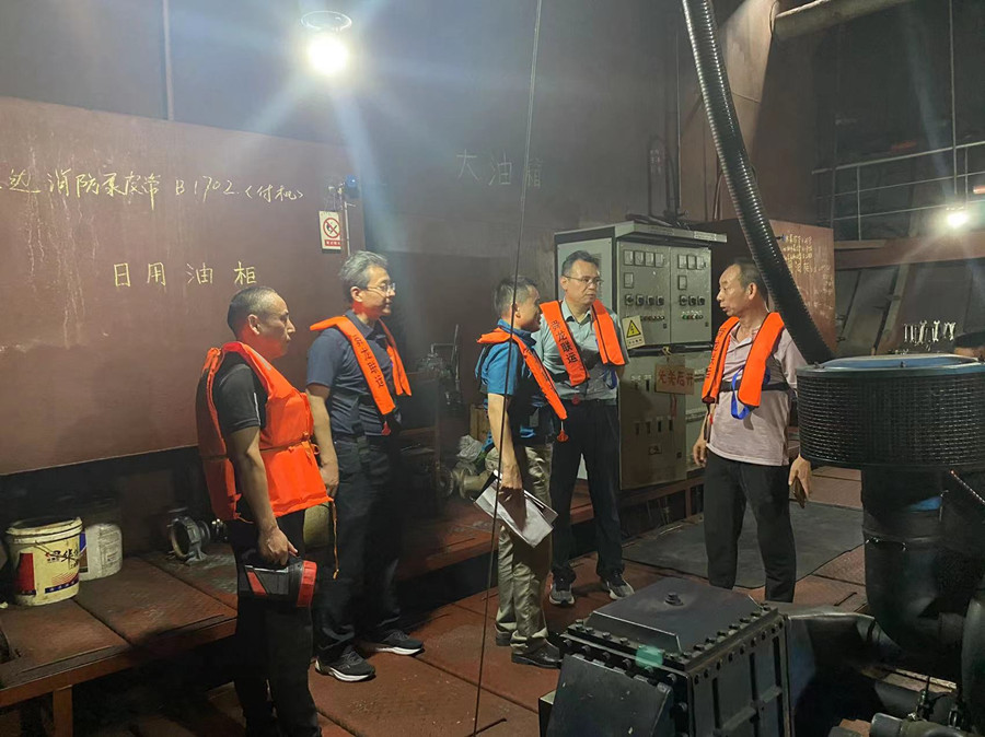 剛一到江輪上,梁斌、班友慧一行就對(duì)舜龍18號(hào)駕駛臺(tái)設(shè)備及航行制度落實(shí)情況、機(jī)艙設(shè)備及維修保養(yǎng)情況、甲板及救生消防設(shè)備進(jìn)行了重點(diǎn)檢查。并與船員親切交談,了解船員的工作生活情況,同時(shí)指出了檢查過(guò)程中發(fā)現(xiàn)的問(wèn)題。