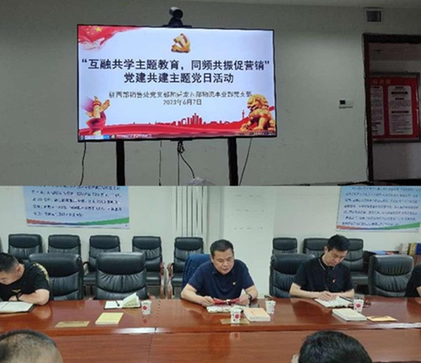 為了努力構(gòu)建“資源共享、互相促進(jìn)、共同提高”的黨建工作新格局,2023年6月7日下午,駐西部銷售處黨支部與舜龍公司西部事業(yè)部黨支部共同組織開展了“互融共學(xué)主題教育 ,同頻共振促營(yíng)銷 ”黨建共建主題黨日活動(dòng),以加強(qiáng)團(tuán)隊(duì)合作,促進(jìn)企業(yè)發(fā)展。
