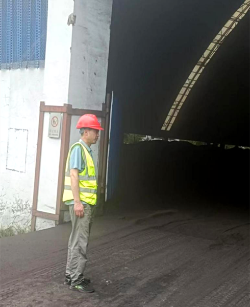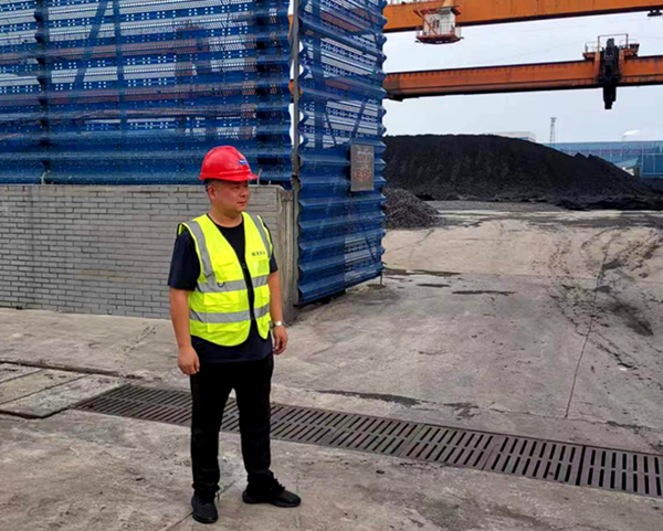宋磊在平圩電廠對(duì)返裝煤進(jìn)行監(jiān)管