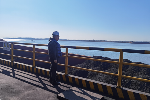 鎮(zhèn)江東港,項承峰在檢查過駁國電蚌埠海船新一海20監(jiān)控,侯爽在檢查鎮(zhèn)江東港至國能蚌埠電廠海船新一海20煤炭運(yùn)輸情況