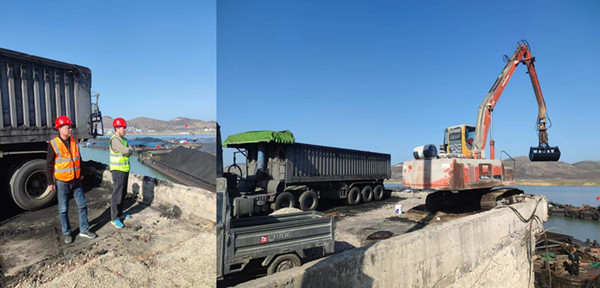 張東、余守起在何臺碼頭接卸淮浙鳳臺電廠海船新海通19到港煤炭