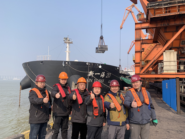 吳大成、李信、宮唐、張皓、項承峰、侯爽在鎮(zhèn)江東港負(fù)責(zé)過駁國電蚌埠海船新一海20煤炭發(fā)運(yùn)工作