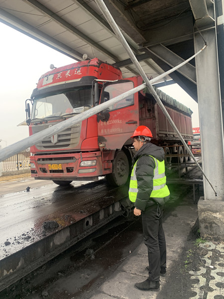 黃飛在鵬源碼頭對運(yùn)輸車輛進(jìn)行過磅