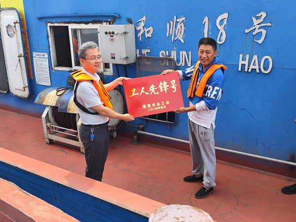 5月份,和順18號(hào)江輪被淮南市總工會(huì)授予“淮南市工人先鋒號(hào)”榮譽(yù)稱號(hào)。上船后,梁斌對(duì)和順18號(hào)舉行了授牌儀式,把這一份榮譽(yù)授予和順18號(hào)全體船員。梁斌強(qiáng)調(diào)這項(xiàng)榮譽(yù)是你們?nèi)w船員齊心協(xié)力安全航行、保質(zhì)保量完成公司的運(yùn)輸任務(wù)的成果,是公司對(duì)你們一年來工作的充分肯定,希望在下一步工作中進(jìn)一步弘揚(yáng)勞模精神,為全體“舜龍人”做好榜樣。