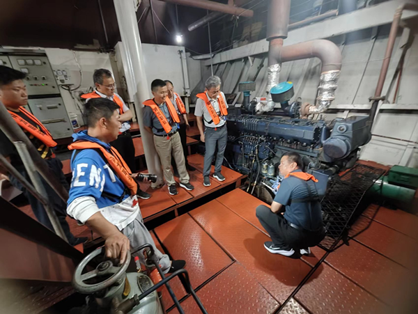隨后梁斌、班友慧一行對(duì)和順18號(hào)駕駛臺(tái)雷達(dá)、高頻、監(jiān)控等設(shè)備的使用情況進(jìn)行詳細(xì)詢問,對(duì)機(jī)艙設(shè)備及維修保養(yǎng)情況、甲板及救生消防設(shè)備進(jìn)行了重點(diǎn)檢查。