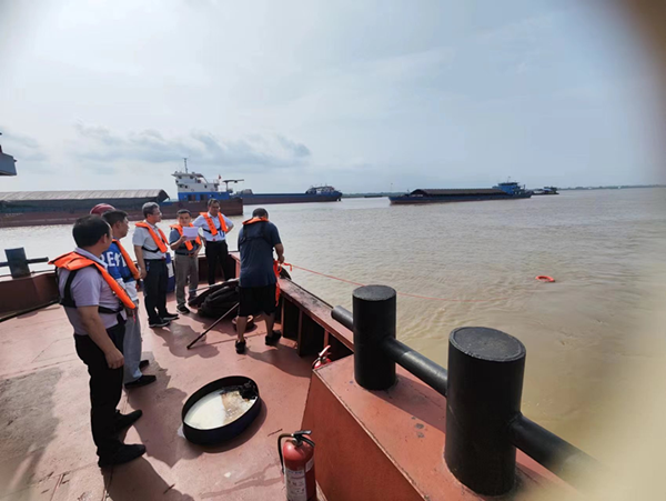 近日,高溫天氣和多雨水天氣導(dǎo)致長(zhǎng)江流域水流湍急,安全風(fēng)險(xiǎn)疊加,水運(yùn)一線安全生產(chǎn)面臨著嚴(yán)峻考驗(yàn)。6月27日,公司黨委副書記、紀(jì)委書記、工會(huì)主席梁斌,黨委委員、副總經(jīng)理班友慧一行到和順18號(hào)江輪開展送清涼、授榮譽(yù)、查隱患、促應(yīng)急等系列安全生產(chǎn)活動(dòng)。
