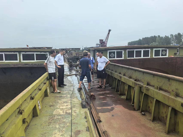 淮河物流事業(yè)部、安監(jiān)辦上舜龍船隊(duì)指導(dǎo)防汛工作,要求全員值班,對(duì)船舶系錨情況進(jìn)行全面檢查和緊固,及時(shí)清理周邊枯樹(shù)雜草等漂浮物,確保船隊(duì)安全度汛。
