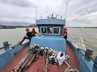 面對(duì)高溫“烤”驗(yàn),躉船鋼板表面溫度直逼70℃,工作人員作業(yè)在船板上,猶如“鐵板燒”。然而,江海物流事業(yè)部江蘇區(qū)域的一線工作人員仍全副武裝——他們身著長(zhǎng)袖上衣、長(zhǎng)褲,頭戴安全帽,身系救生衣,在悶熱如蒸籠的船艙、甲板間來(lái)回穿梭。汗水反復(fù)浸透衣服又蒸發(fā)晾干,后背上凝結(jié)的鹽漬清晰可見,卻無(wú)一人退離作業(yè)一線。